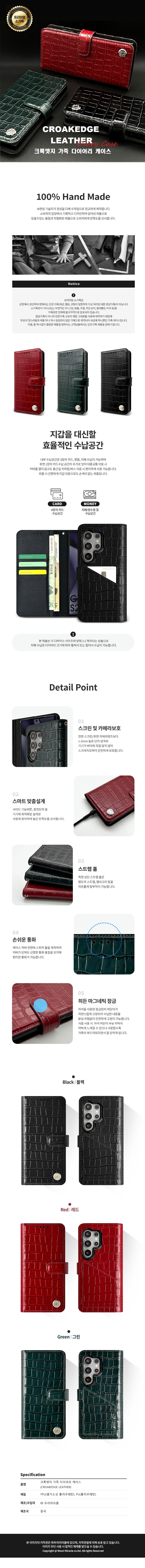 [갤럭시 S24 S921/S25 S931] S921/S931 크록엣지 프리미엄 소가죽 다이어리